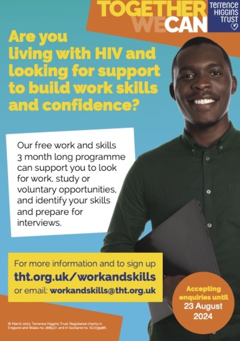 Work and Skills is a personal development programme aiming to provide people living with HIV (PLWHIV) who are unemployed or in unsuitable work with online learning modules, online peer support, online mentoring and support to access local training and volunteer opportunities.